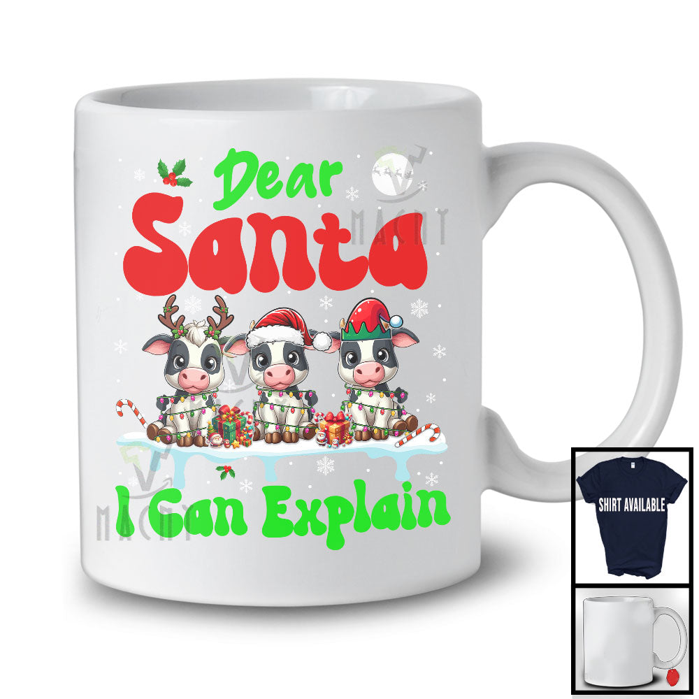 The Dear Santa I Can Explain; Fantastic Christmas Lights Three Cows Farm Animal; Snowing Farmer T-Shirt destined to impress, and priced at only $12.95, for a limited time.