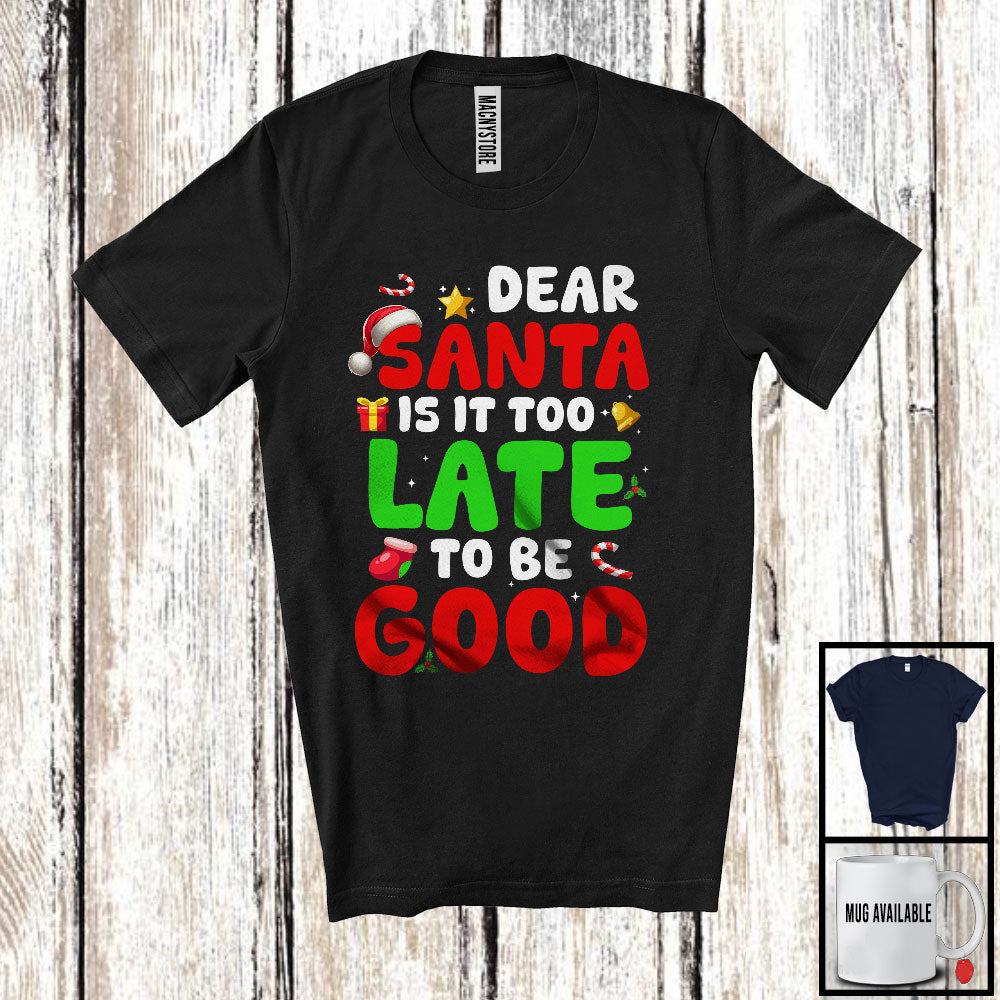new MacnyStore - Dear Santa Is It Too Late To Be Good; Sarcastic Christmas Santa Snowing; Family Group T-Shirt – Macnystore