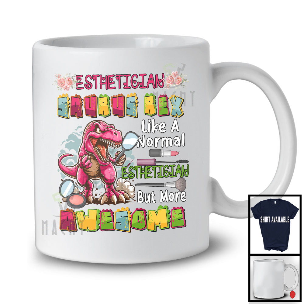Esthetician Saurus Rex But More Awesome; Proud T-Rex Dinosaur Lover Flowers; Jobs Careers T-Shirt. This cotton t-shirt is a durable staple product with a classic fit. One of the most popular items, it has a relaxed style made for everyday and casual wear.