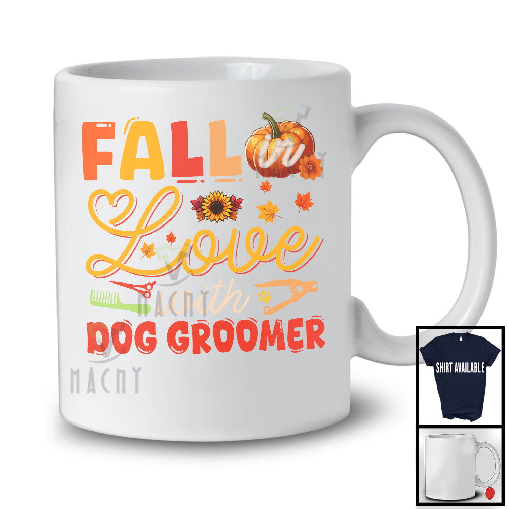 Fall In Love With Dog Groomer; Wonderful Thanksgiving Autumn Pumpkin; Jobs Careers Proud T-Shirt