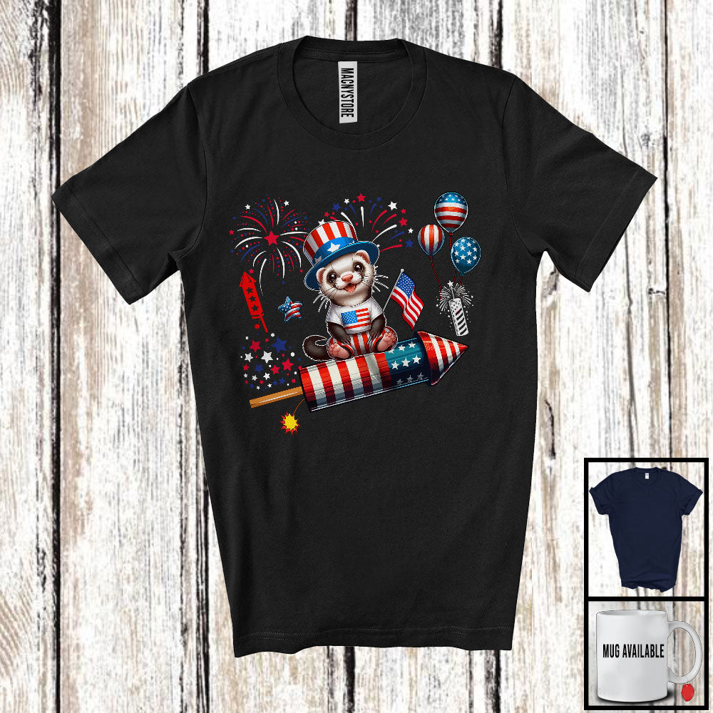 new MacnyStore - Ferret Riding Firecracker, Amazing 4th Of July American Flag Firecracker, Animal Zoo Lover T-Shirt – Macnystore