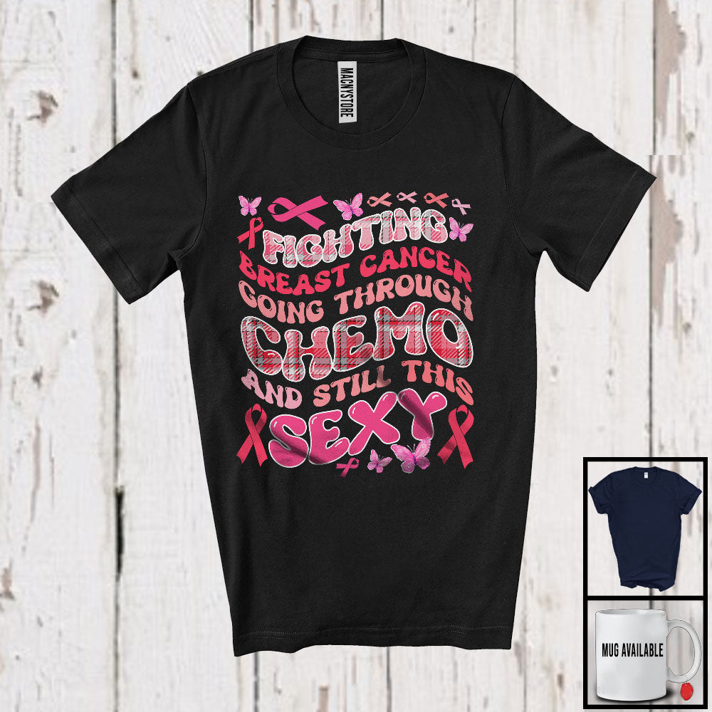 The Fighting Breast Cancer Through Chemo; Lovely Breast Cancer Awareness Plaid Pink Ribbon; Family T-Shirt is the product you didn't think you need, but once you have it, something you won't want to live without.