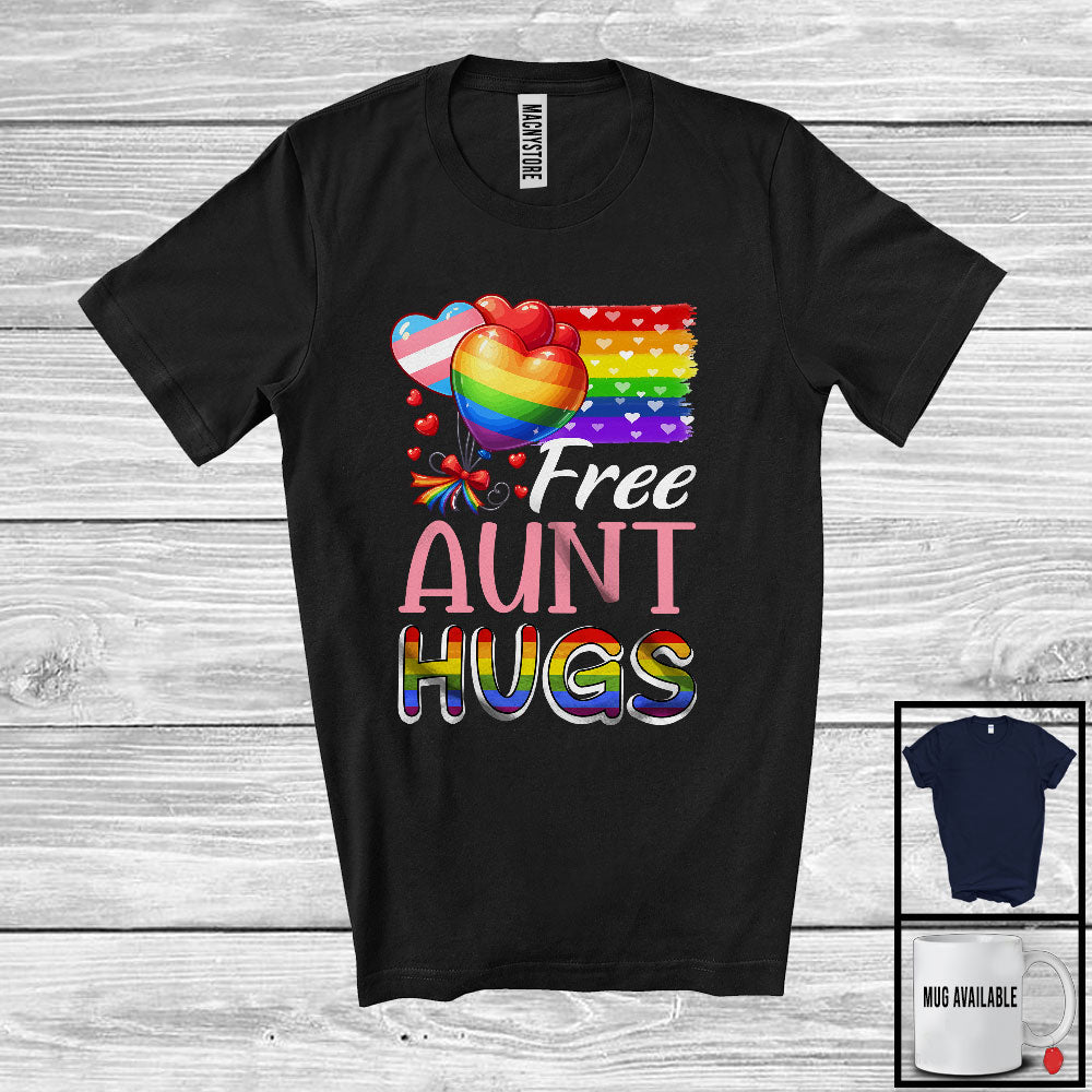 Free Aunt Hugs, Proud LGBTQ Gay Pride Transgender Rainbow Flag, Matching Family Group T-Shirt