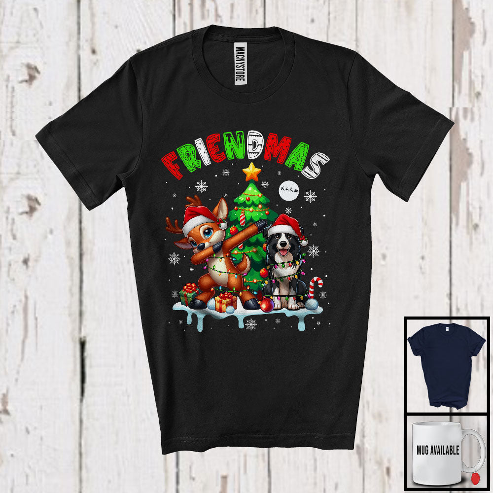 Friendmas; Joyful Christmas Tree Santa Border Collie Owner; X-mas Lights Dabbing Reindeer T-Shirt