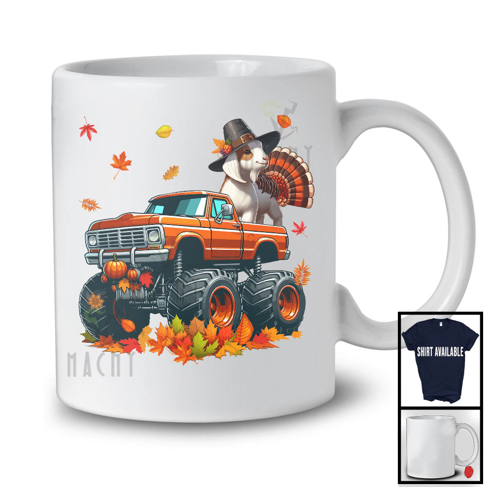 This Goat Turkey On Monster Truck; Humorous Thanksgiving Autumn Fall Leaves; Family T-Shirt is great idea gift for your family, friends in this birthday, christmas, mother's day, father's day, patrick's day or any holiday.