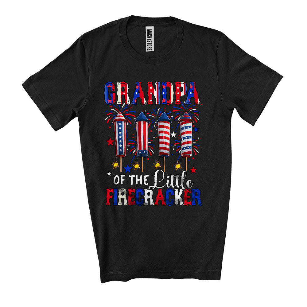 Grandpa Of The Little Firecracker, Joyful 4th Of July Firework US Flag, Matching Family Group T-Shirt. This cotton t-shirt is a durable staple product with a classic fit. One of the most popular items, it has a relaxed style made for everyday and casual wear.