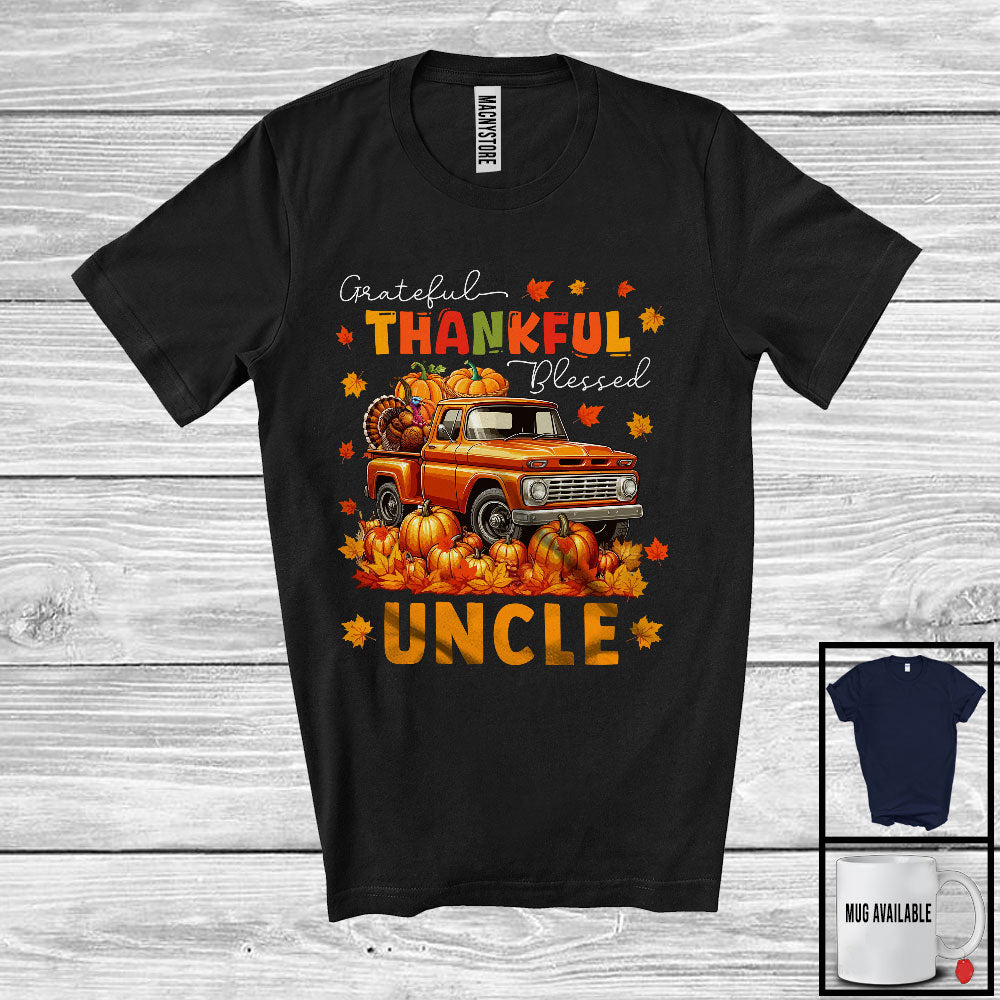 Grateful Thankful Blessed Uncle; Wonderful Thanksgiving Turkey Pumpkin On Pickup Truck; Family T-Shirt