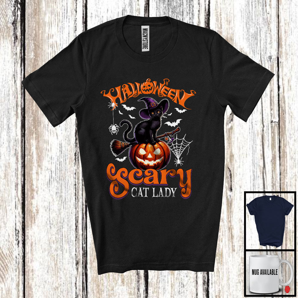 Halloween Scary Cat Lady, Scary Halloween Costume Witch Black Cat, Carved Pumpkin Lover T-Shirt