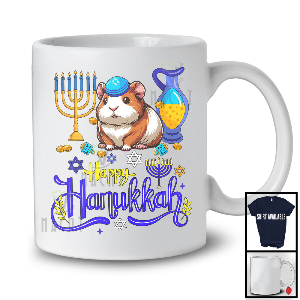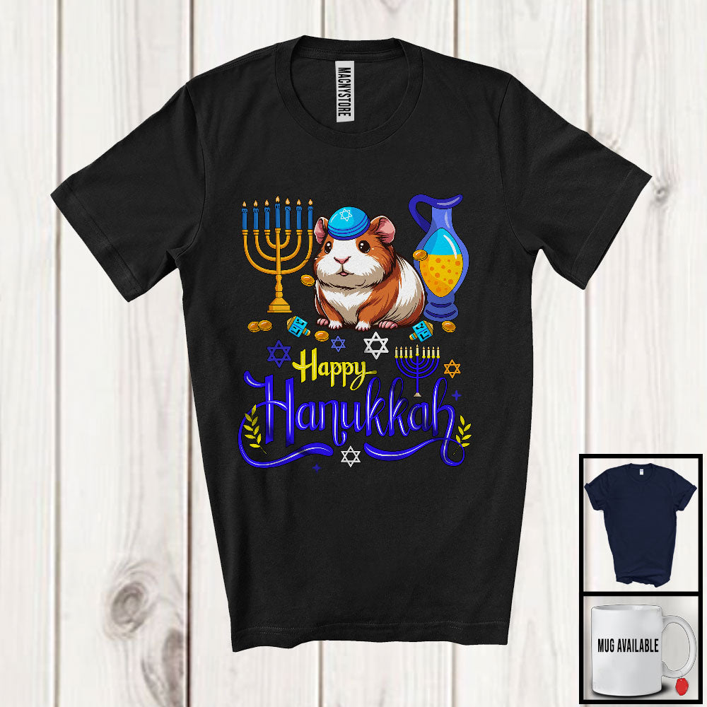 Happy Hanukkah; Happy Chanukah Lovely Guinea Pig With Menorah; Animal Family Group T-Shirt. This cotton t-shirt is a durable staple product with a classic fit. One of the most popular items, it has a relaxed style made for everyday and casual wear.