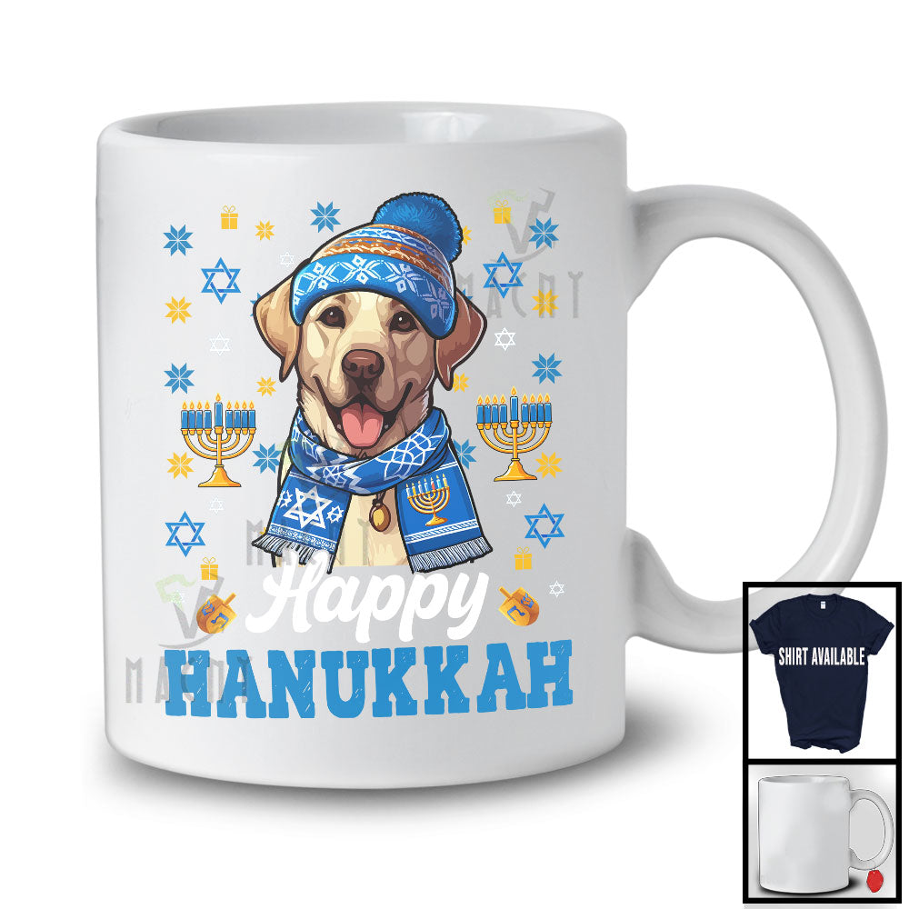 Happy Hanukkah; Lovely Chanukah Hanukkah Labrador Retriever Owner Lover; Menorah Family Group T-Shirt. This cotton t-shirt is a durable staple product with a classic fit. One of the most popular items, it has a relaxed style made for everyday and casual wear.