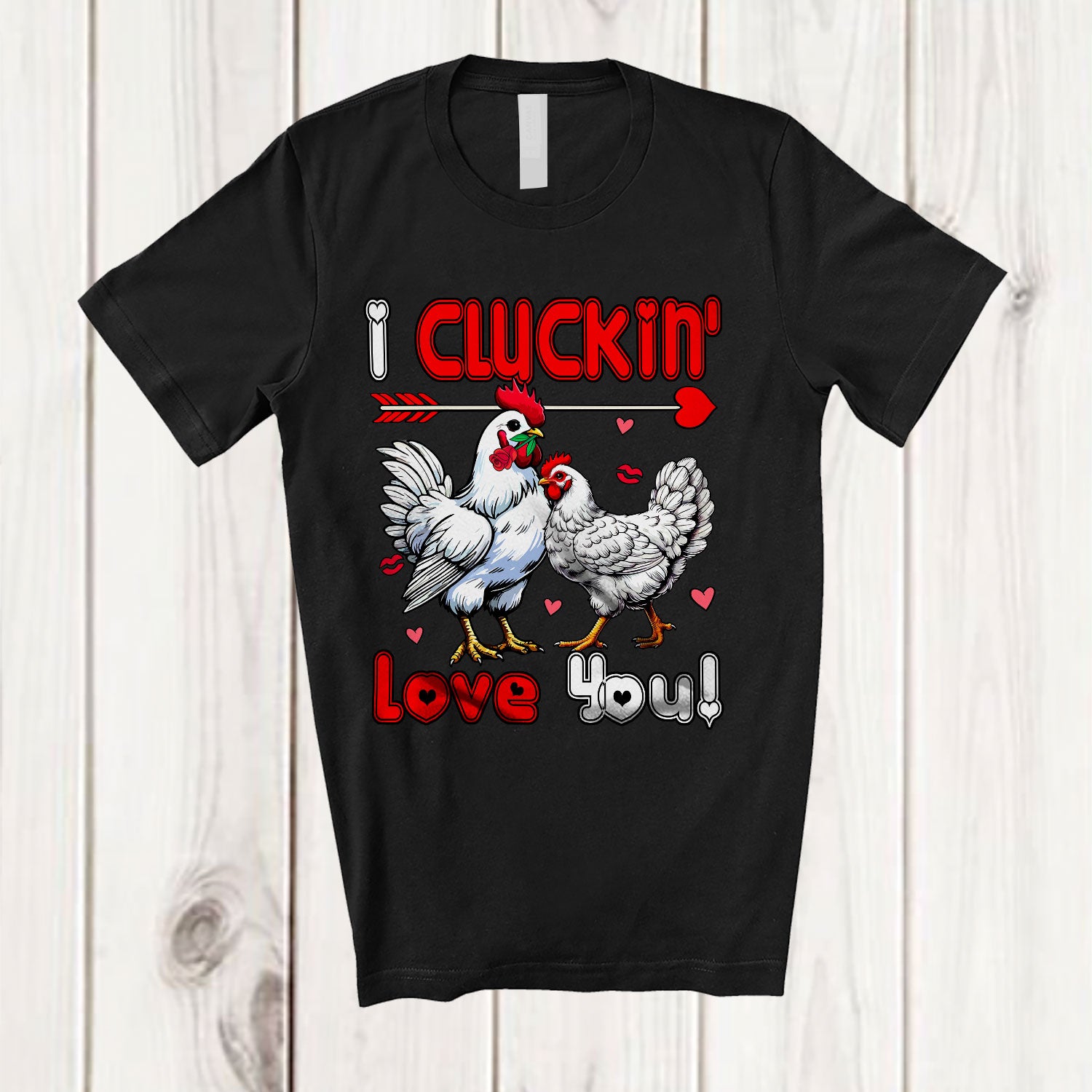 I Cluckin' Love You; Humorous Valentine's Day Hearts Chicken Farming Farmer; Farm Couple T-Shirt. This cotton t-shirt is a durable staple product with a classic fit. One of the most popular items, it has a relaxed style made for everyday and casual wear.