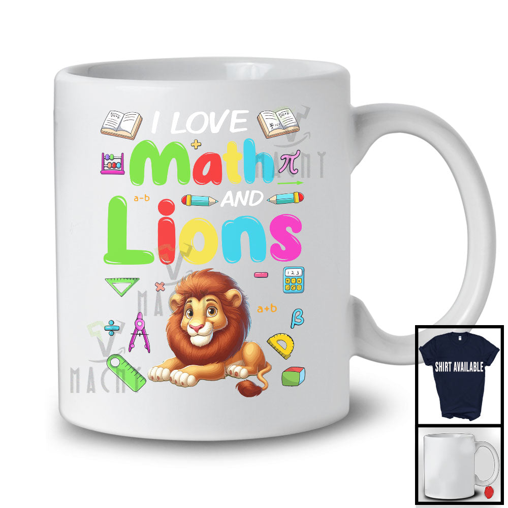• The I Love Math And Lions, Colorful Lions Animal Lover, Matching Math Teacher Student Team T-Shirt destined to impress, and priced at only $12.95, for a limited time.