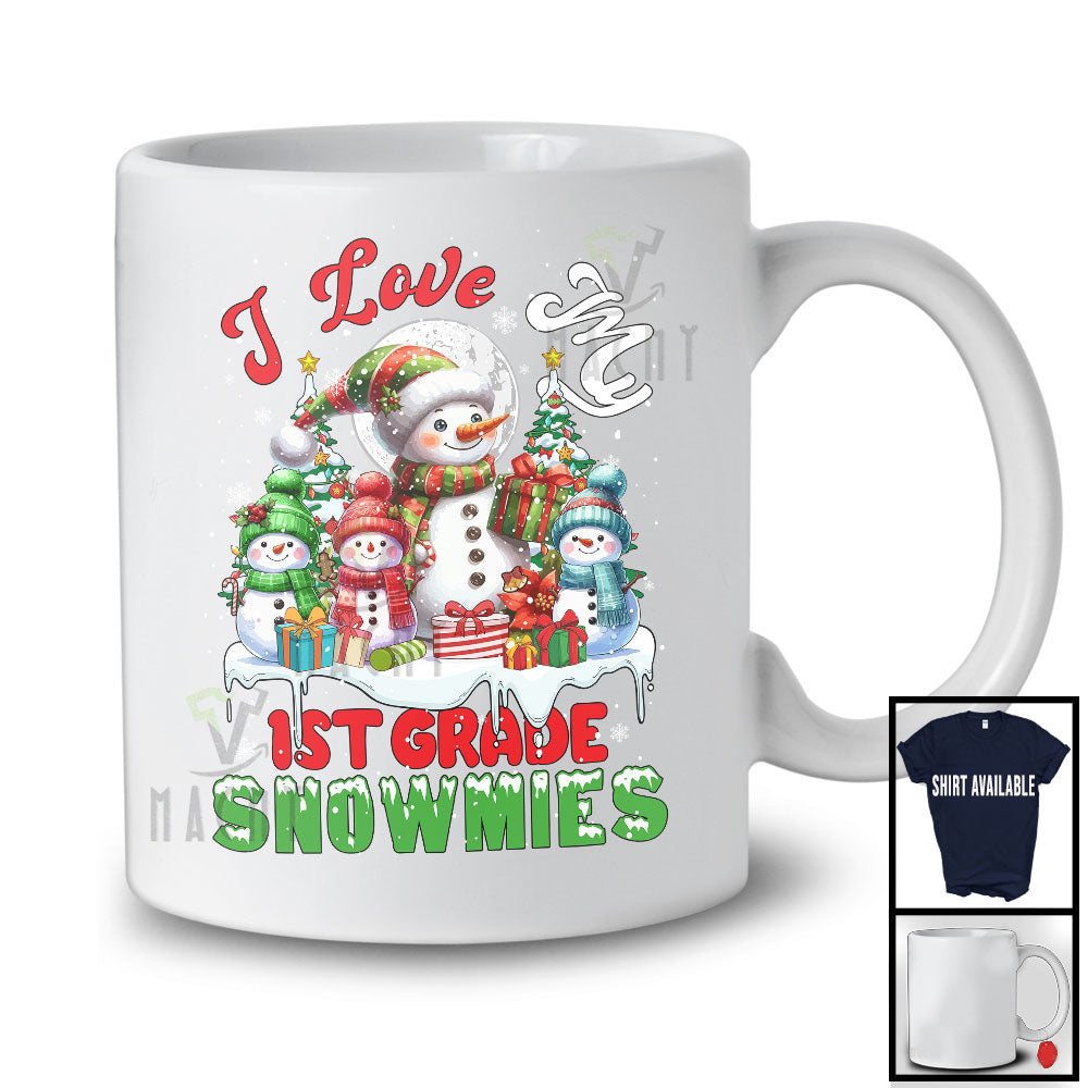 • I Love My 1st Grade Snowmies; Joyful Christmas Tree Snowman Lover; X-mas Teacher Group T-Shirt. This cotton t-shirt is a durable staple product with a classic fit. One of the most popular items, it has a relaxed style made for everyday and casual wear.