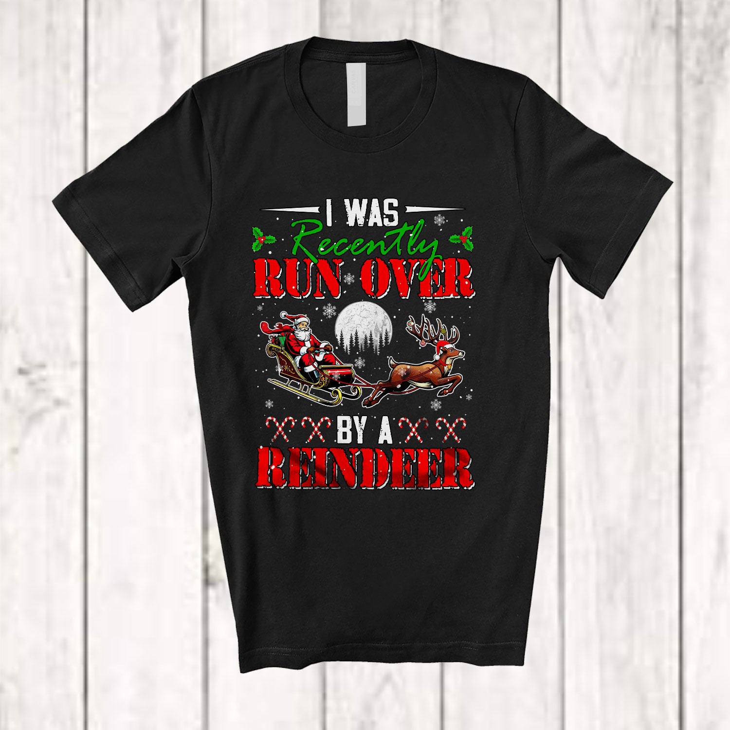 I Was Recently Run Over By A Reindeer; Humorous Christmas Santa Sleigh; Runner Running T-Shirt. This cotton t-shirt is a durable staple product with a classic fit. One of the most popular items, it has a relaxed style made for everyday and casual wear.