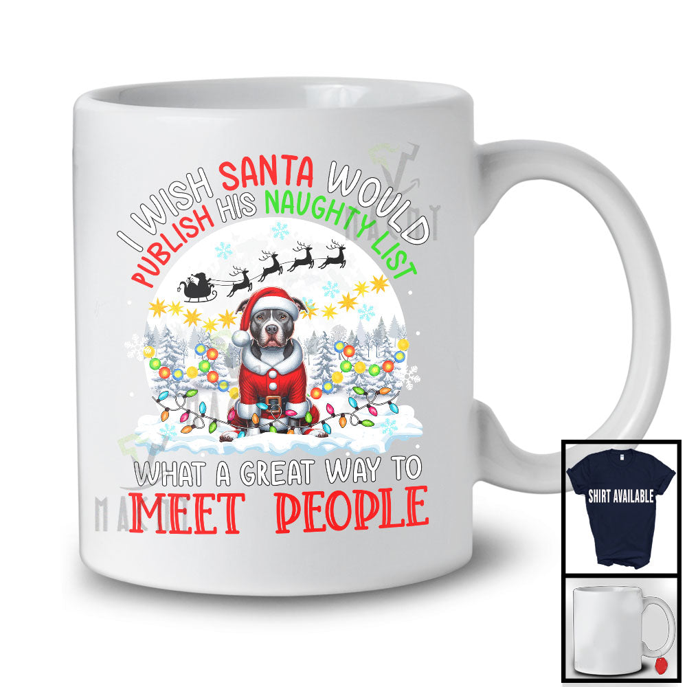 I Wish Santa Would Publish His Naughty List; Lovely Christmas Moon Pit Bull Owner; X-mas Lights T-Shirt