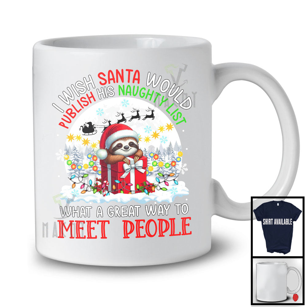 I Wish Santa Would Publish His Naughty List; Lovely Christmas Moon Sloth Owner; X-mas Lights T-Shirt