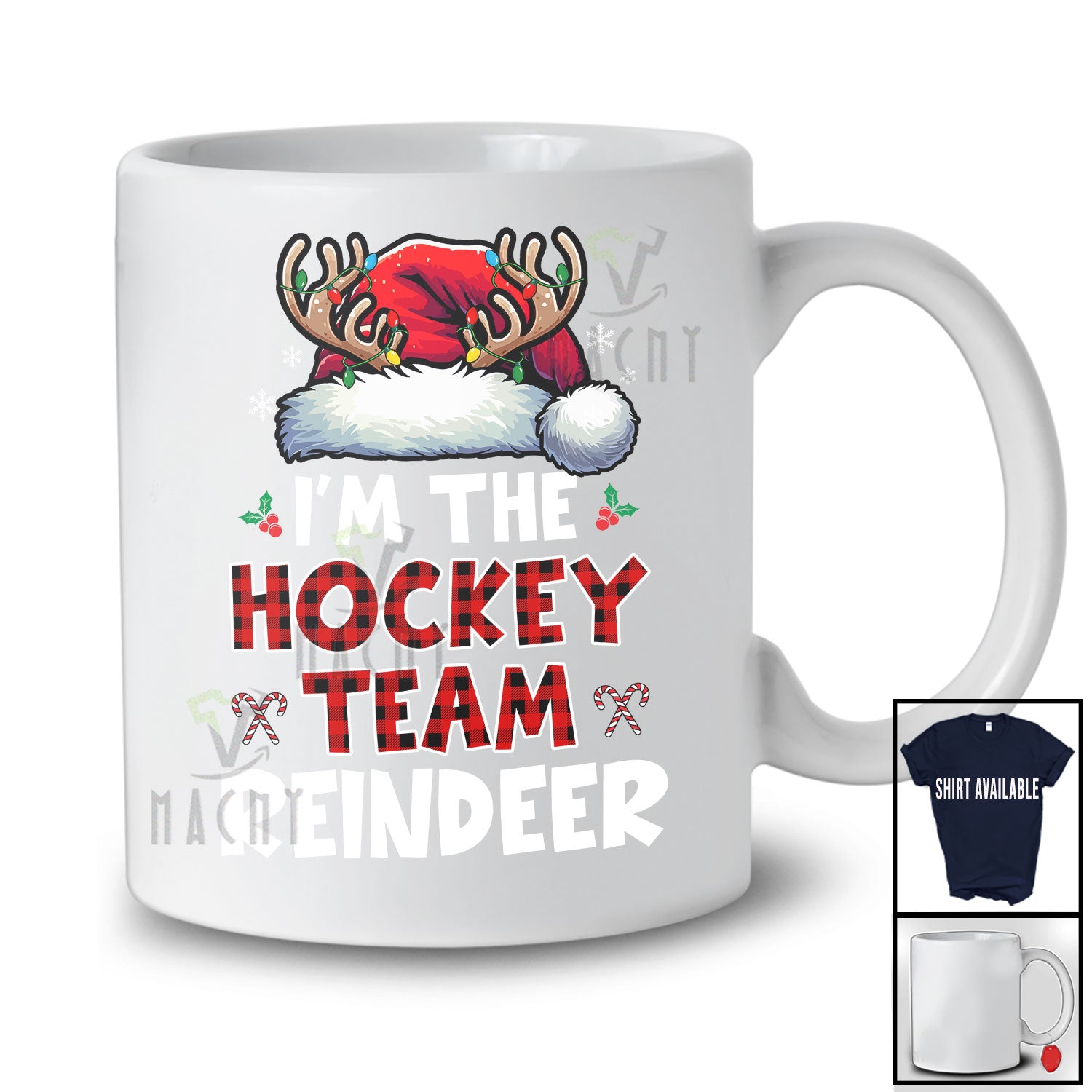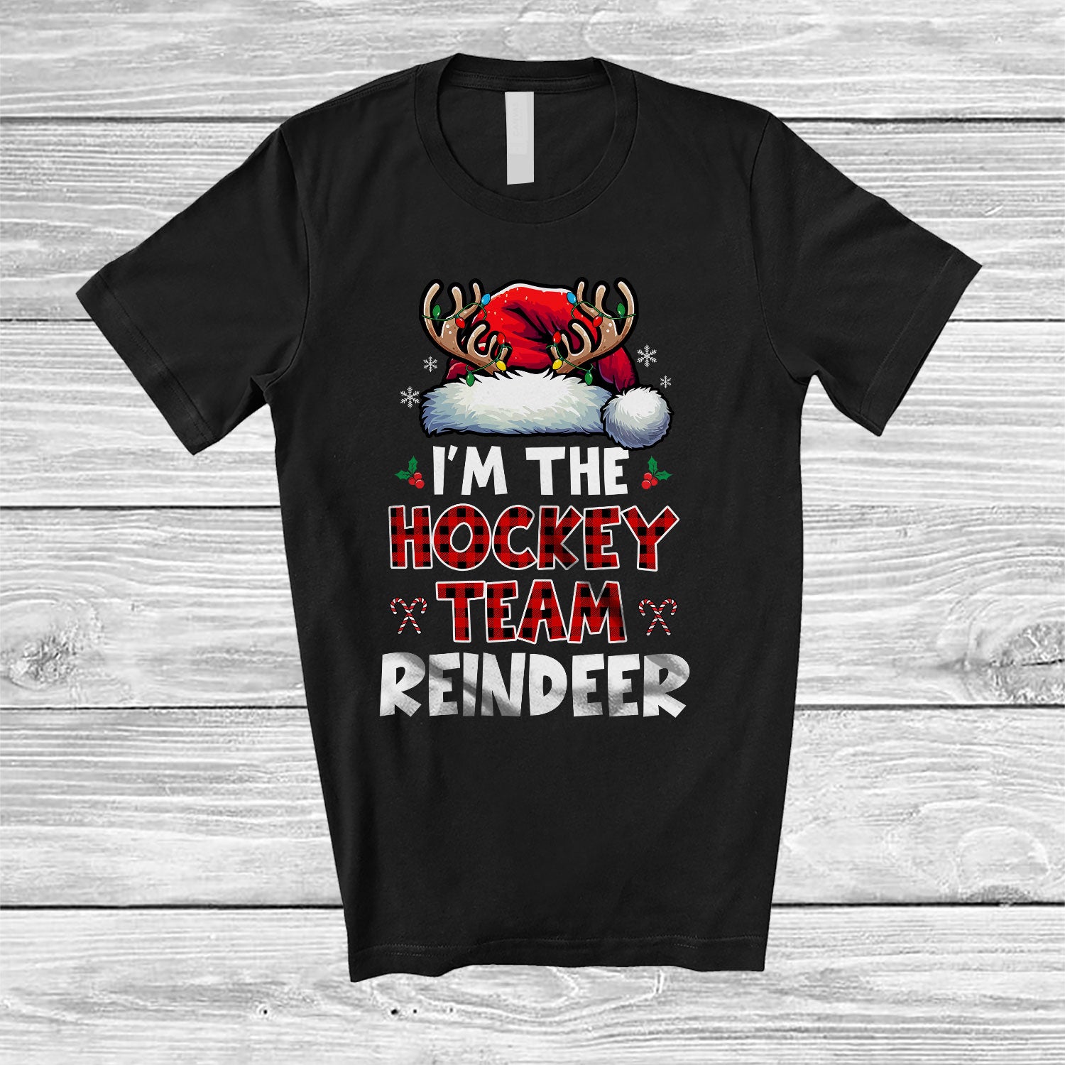 I'm The Hockey Team Reindeer; Joyful Christmas Red Plaid Santa Reindeer; Sport Player Family T-Shirt