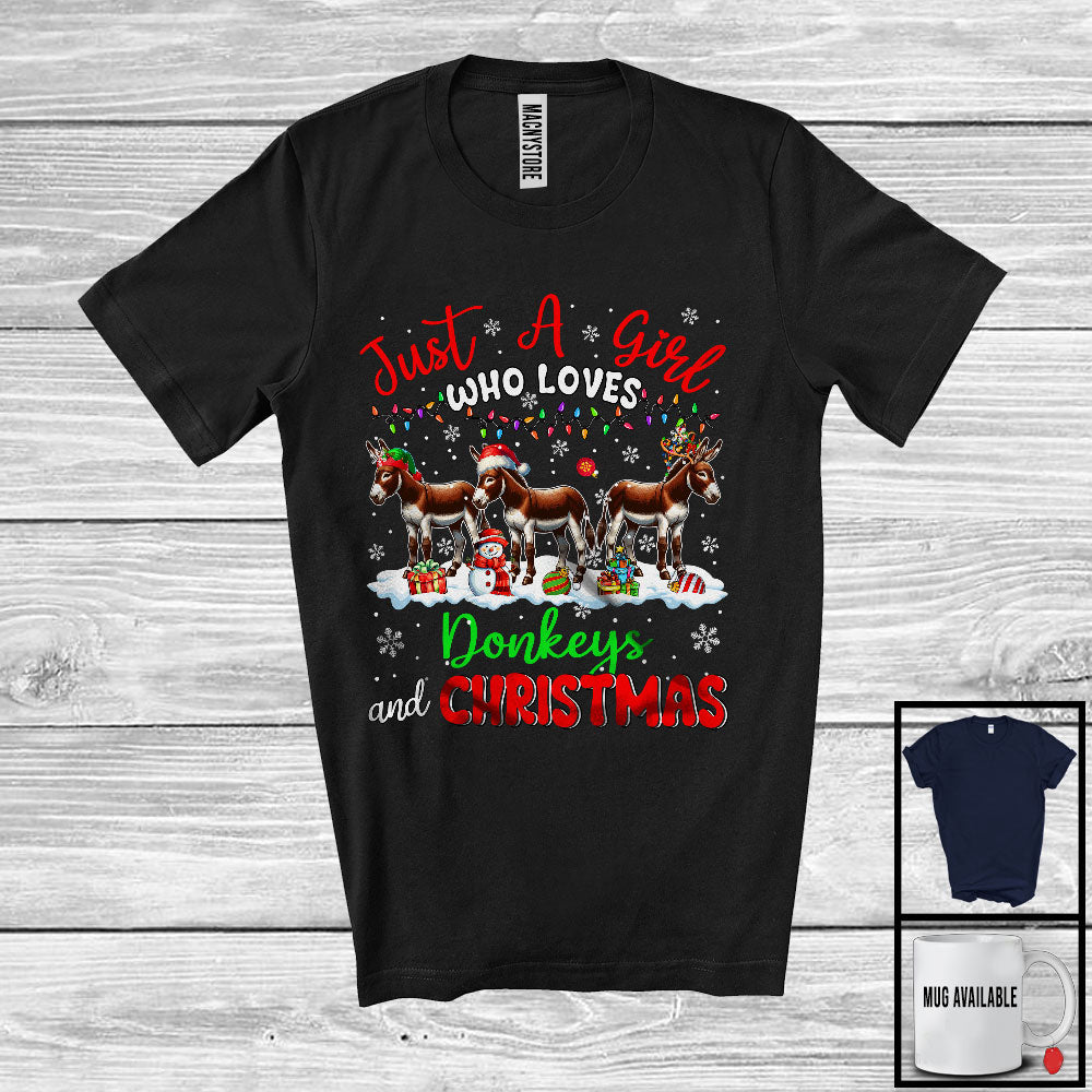 new MacnyStore - Just A Girl Who Loves Chickens And Donkeys; Awesome X-mas Lights Donkey; Farmer Farm Animals T-Shirt – Macnystore