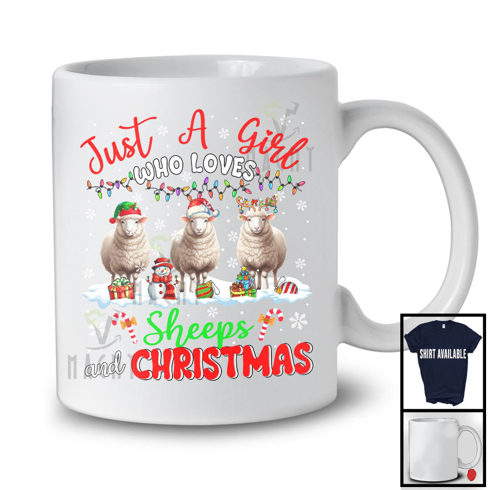 This Just A Girl Who Loves Sheeps And Christmas; Awesome X-mas Lights Sheep; Farmer Farm Animals T-Shirt is great idea gift for your family, friends in this birthday, christmas, mother's day, father's day, patrick's day or any holiday.