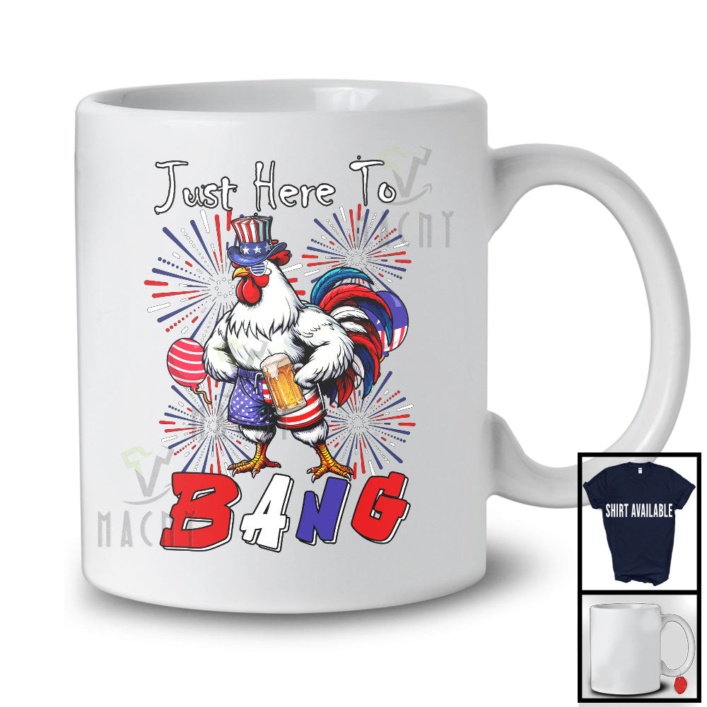 • Just Here To Bang, Adorable 4th Of July American Flag Chicken Drinking Beer, Drunker Patriotic T-Shirt. This cotton t-shirt is a durable staple product with a classic fit. One of the most popular items, it has a relaxed style made for everyday and casual wear.