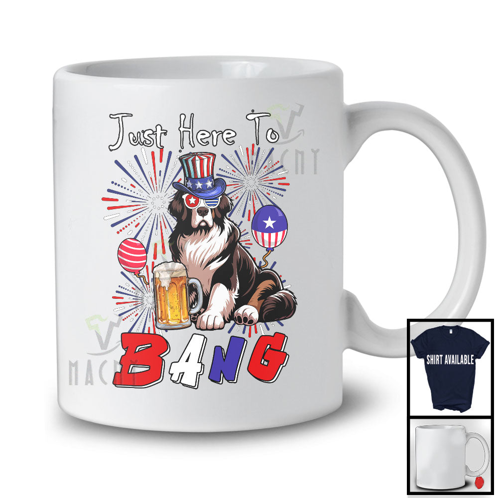 Just Here To Bang, Adorable 4th Of July American Flag Landseer Drinking Beer, Drunker Patriotic T-Shirt. This cotton t-shirt is a durable staple product with a classic fit. One of the most popular items, it has a relaxed style made for everyday and casual wear.