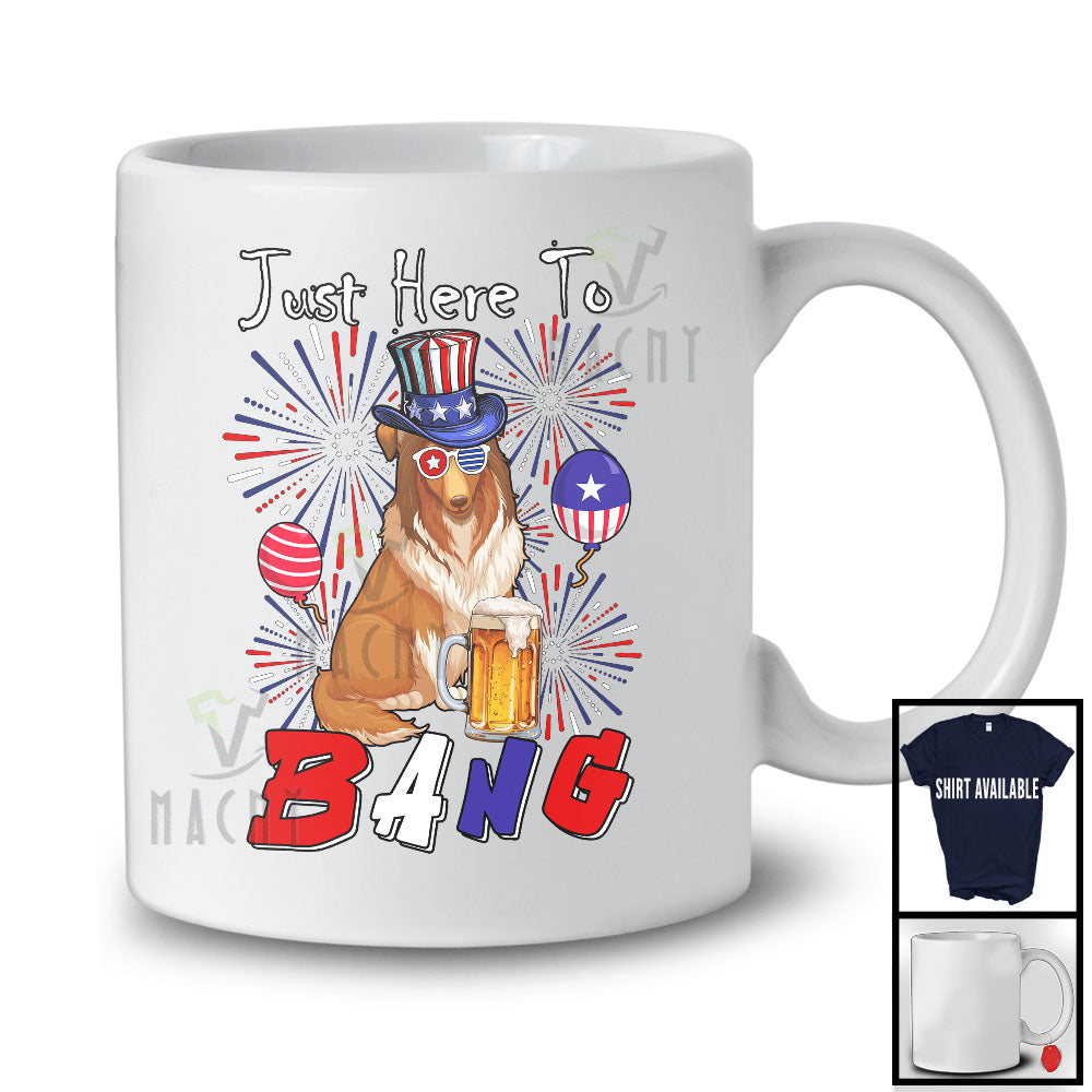 Just Here To Bang, Adorable 4th Of July American Flag Sheltie Drinking Beer, Drunker Patriotic T-Shirt