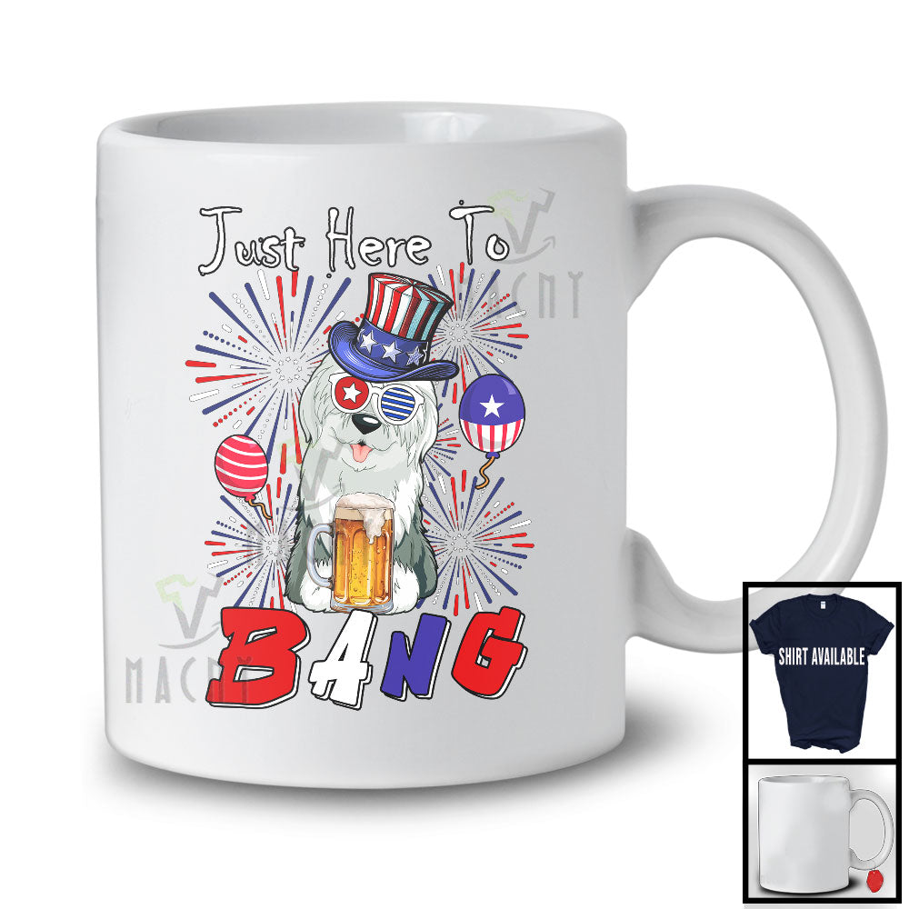 Just Here To Bang, Adorable 4th Of July English Sheepdog Drinking Beer, Drunker Patriotic Group T-Shirt