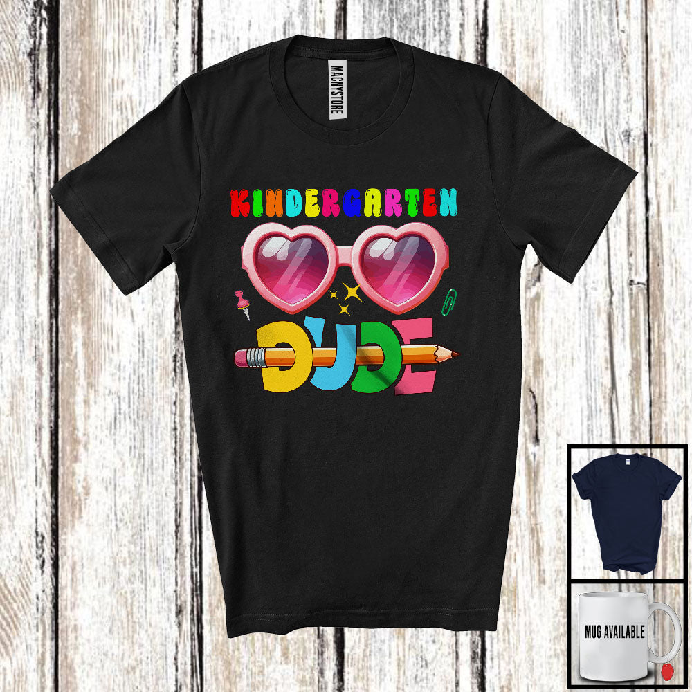 Kindergarten Dude; Adorable Back To School First Day Pink Sunglasses; Girls Students Teacher T-Shirt. This cotton t-shirt is a durable staple product with a classic fit. One of the most popular items, it has a relaxed style made for everyday and casual wear.