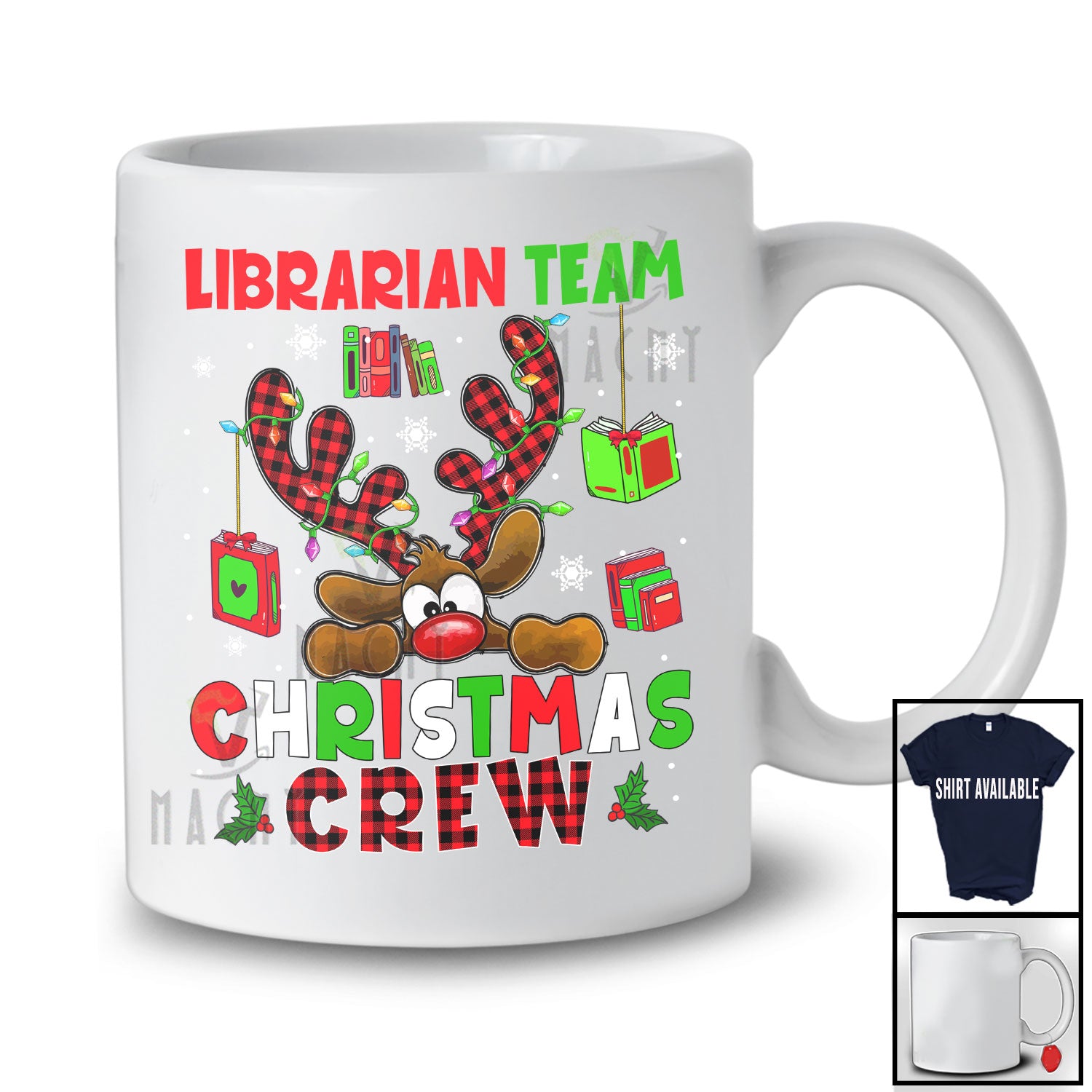 The Librarian Team Christmas Crew; Fantastic X-mas Red Plaid Reindeer Face; Proud Careers Jobs T-Shirt destined to impress, and priced at only $12.95, for a limited time.