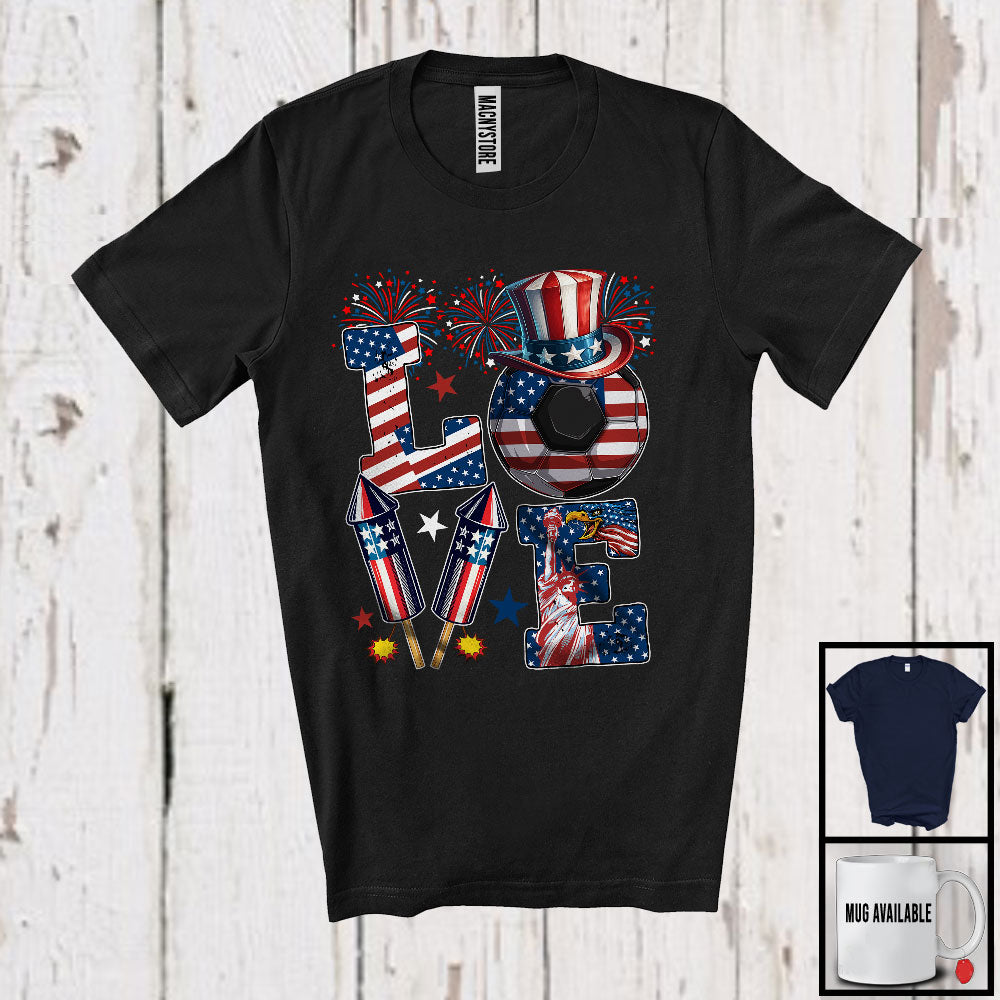 LOVE, Awesome 4th Of July American Flag Soccer Playing Player, Patriotic Sport Team T-Shirt