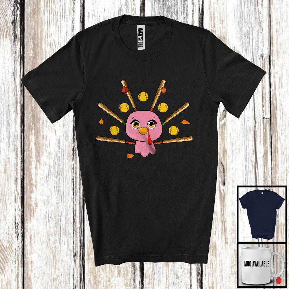 Lovely Turkey Face And Softball Tail; Wonderful Thanksgiving Softball Player; Sport Team T-Shirt