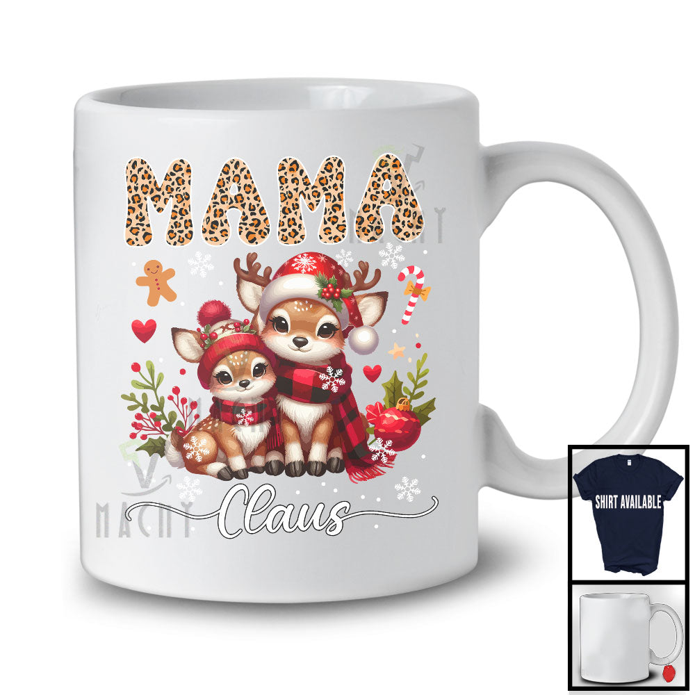 • Mama Claus; Lovely Christmas Leopard Plaid Reindeer Lover; X-mas Snowing Family Group T-Shirt. This cotton t-shirt is a durable staple product with a classic fit. One of the most popular items, it has a relaxed style made for everyday and casual wear.