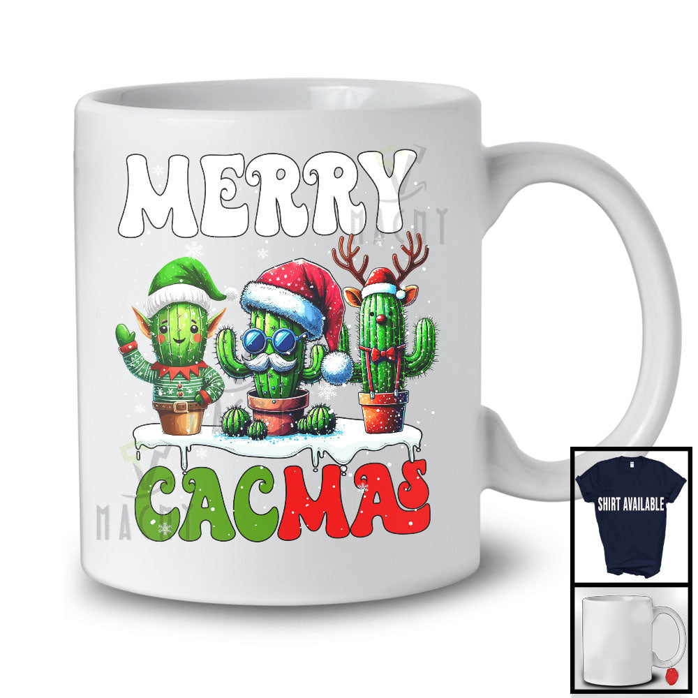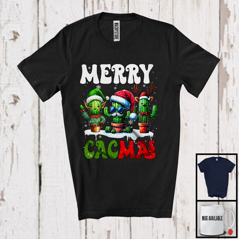 Merry Cacmas; Adorable Christmas Snow Plaid Santa Reindeer ELF Cactus; X-mas Snowing T-Shirt