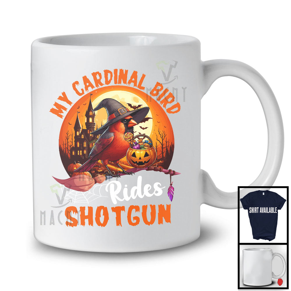 My Cardinal Bird Rides Shotgun, Humorous Halloween Costume Witch Bird Lover, Family Group T-Shirt. This cotton t-shirt is a durable staple product with a classic fit. One of the most popular items, it has a relaxed style made for everyday and casual wear.