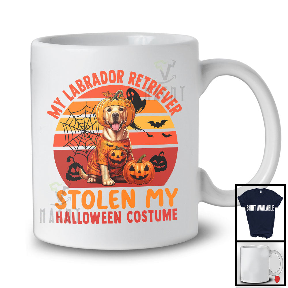 My Labrador Retriever Stolen My Halloween Costume; Creepy Pumpkin Retro; Family Group T-Shirt. This cotton t-shirt is a durable staple product with a classic fit. One of the most popular items, it has a relaxed style made for everyday and casual wear.