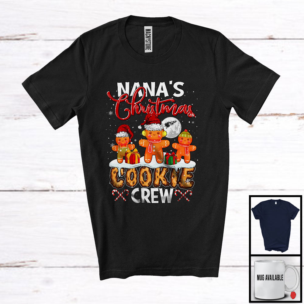 Nana's Christmas Cookie Crew; Humorous X-mas Three Santa Gingerbreads; Moon Family Group T-Shirt