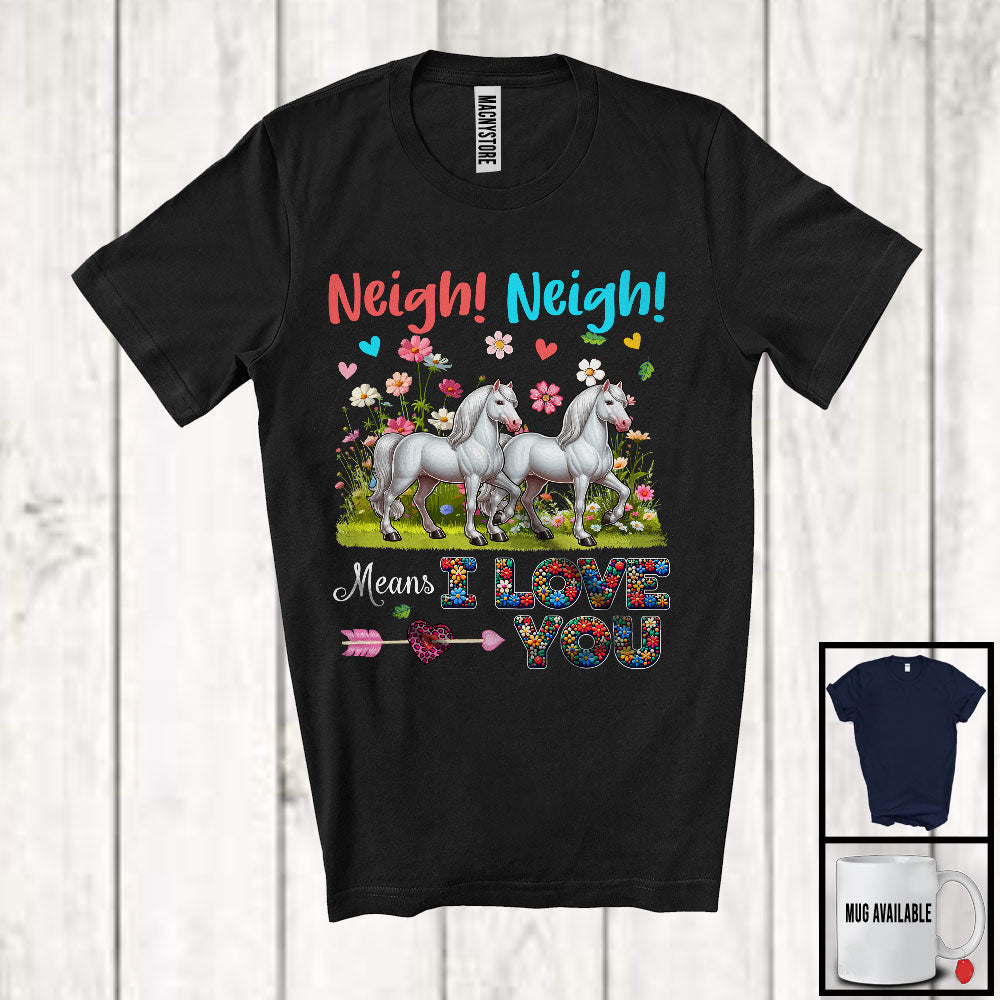Neigh Neigh Means I Love You, Adorable Horses Flowers Farm Animal, Matching Farmer Lover T-Shirt