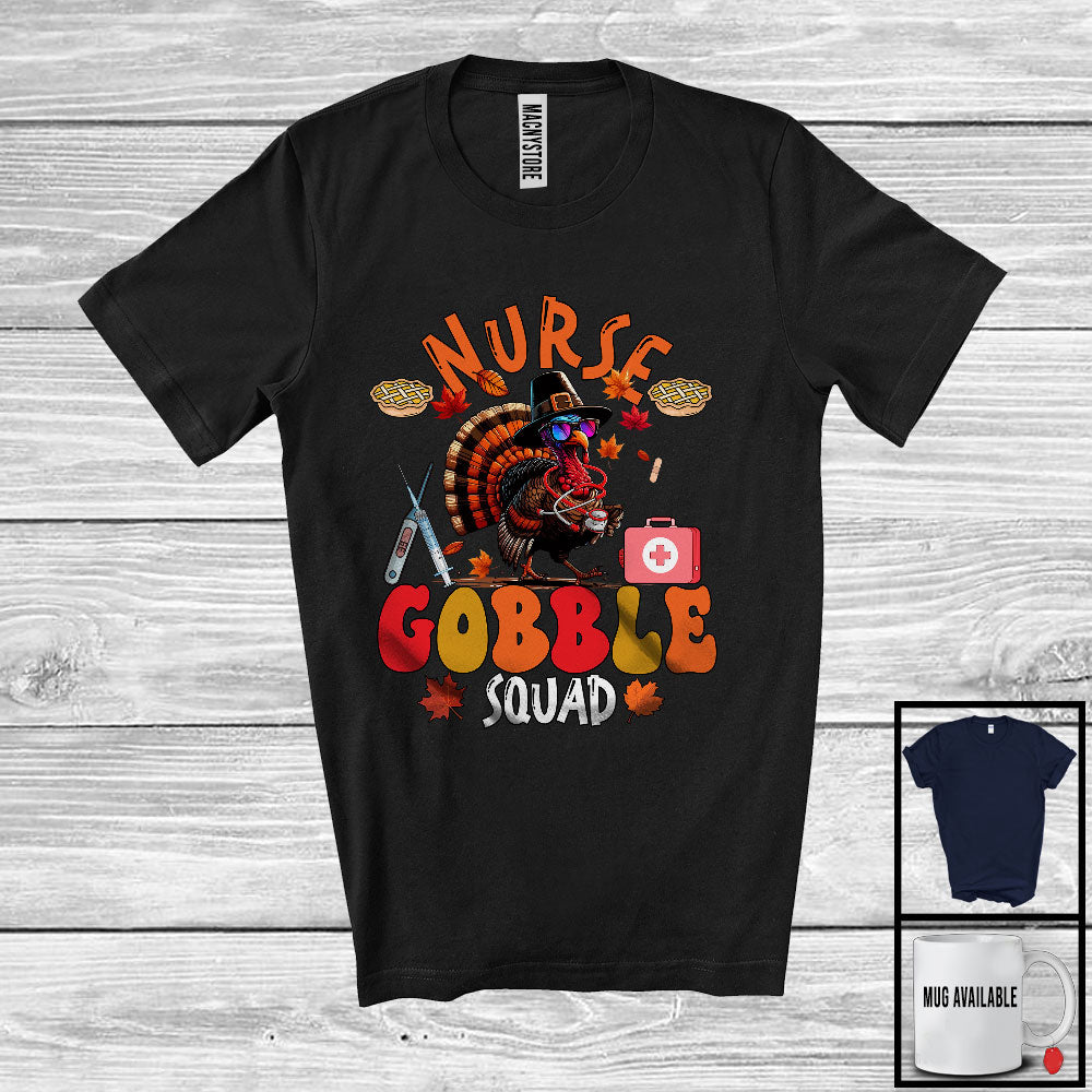 Nurse Gobble Squad; Humorous Thanksgiving Turkey Fall Leaves; Jobs Careers Group T-Shirt