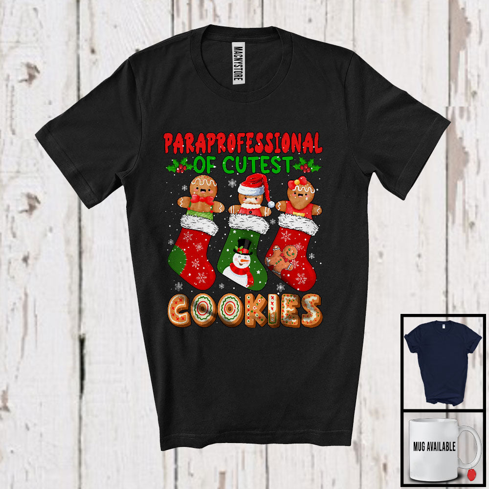• Paraprofessional Of Cutest Cookies; Adorable Christmas Three Gingerbread In Socks; Baker T-Shirt. This cotton t-shirt is a durable staple product with a classic fit. One of the most popular items, it has a relaxed style made for everyday and casual wear.