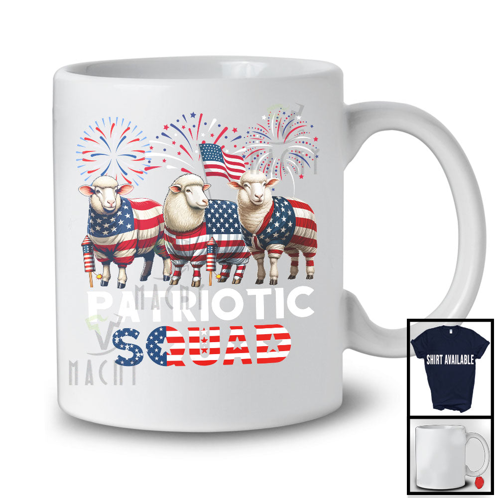 Patriotic Squad, Awesome 4th Of July Three Sheep Farmer, American Flag Fireworks Family Group T-Shirt