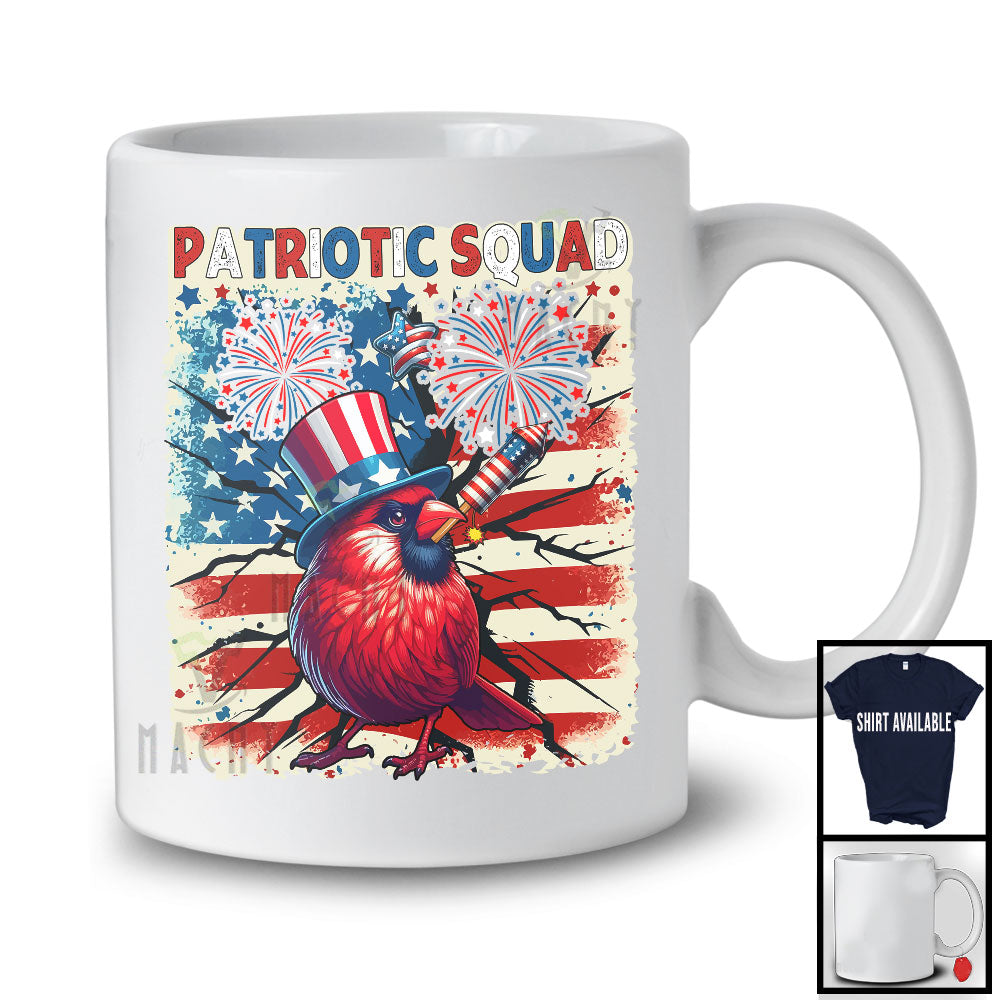 • Patriotic Squad, Lovely 4th Of July American Flag Cardinal Bird Lover, Firecrackers Patriotic Group T-Shirt. This cotton t-shirt is a durable staple product with a classic fit. One of the most popular items, it has a relaxed style made for everyday and casual wear.