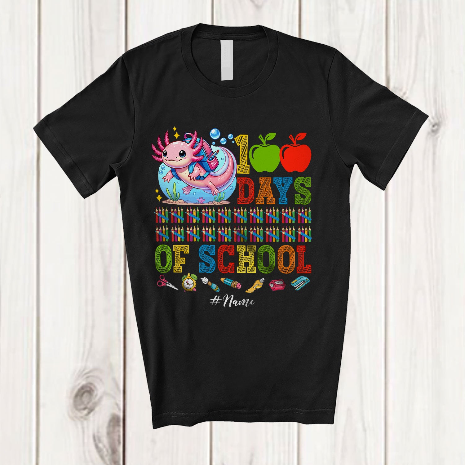 new MacnyStore - Personalized 100 Days Of School; Custom Name Cool Axolotl Schoolbag 100th Day T-Shirt – Macnystore