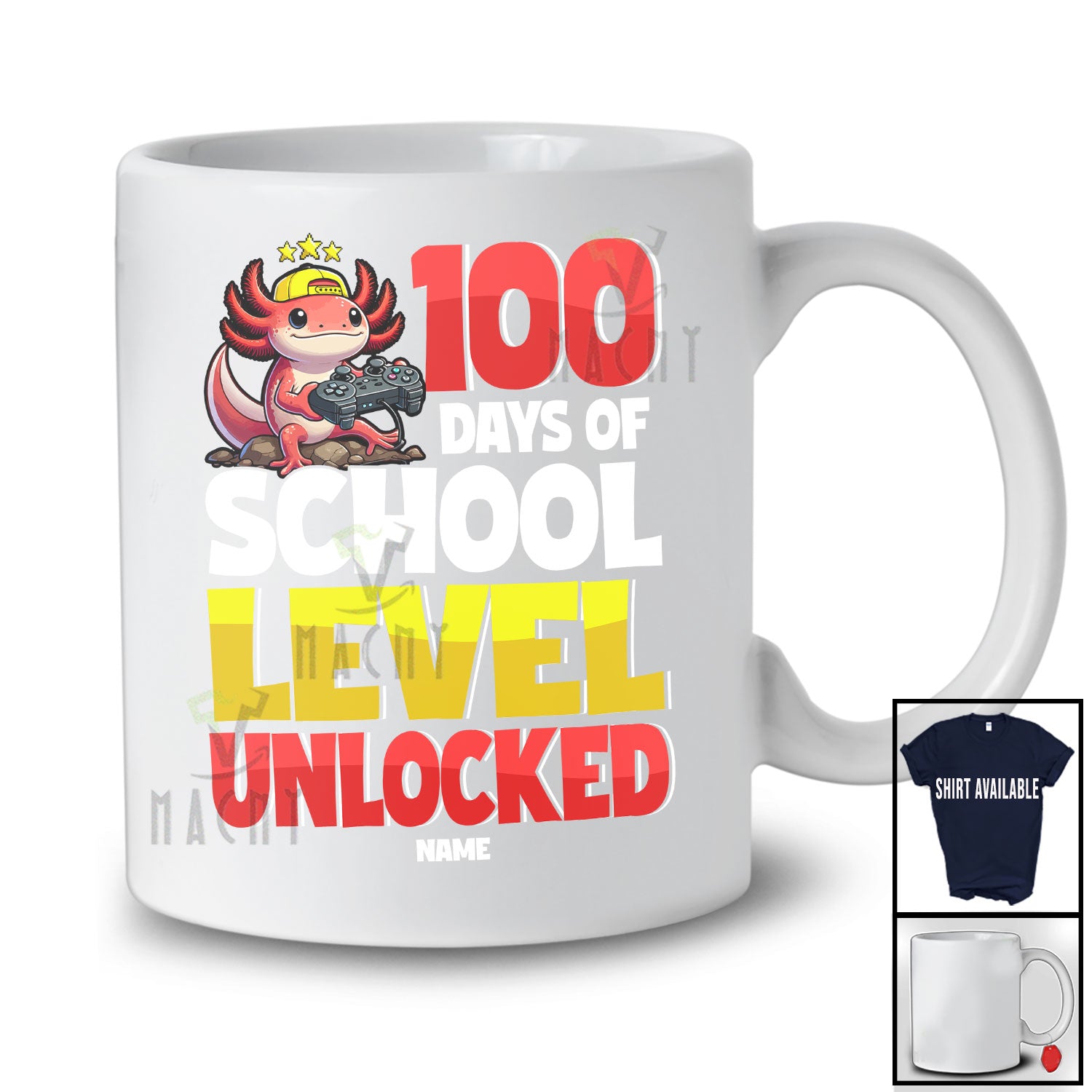 • Personalized 100 Days of School Level Unlocked; Joyful Axolotl Gamer; Custom Name Students Teacher T-Shirt. This cotton t-shirt is a durable staple product with a classic fit. One of the most popular items, it has a relaxed style made for everyday and casual wear.