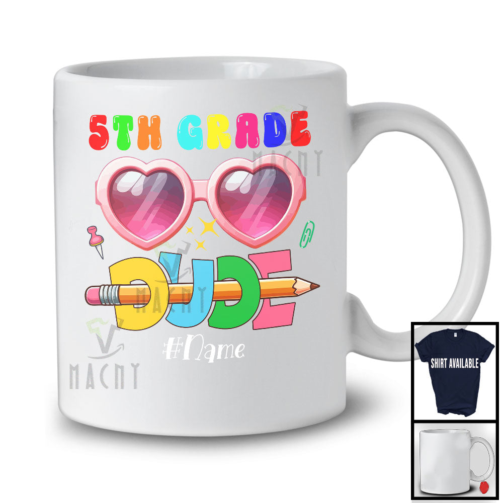 Personalized 5th Grade Dude; Happy Back To School Sunglasses Custom Name; Girls Students T-Shirt