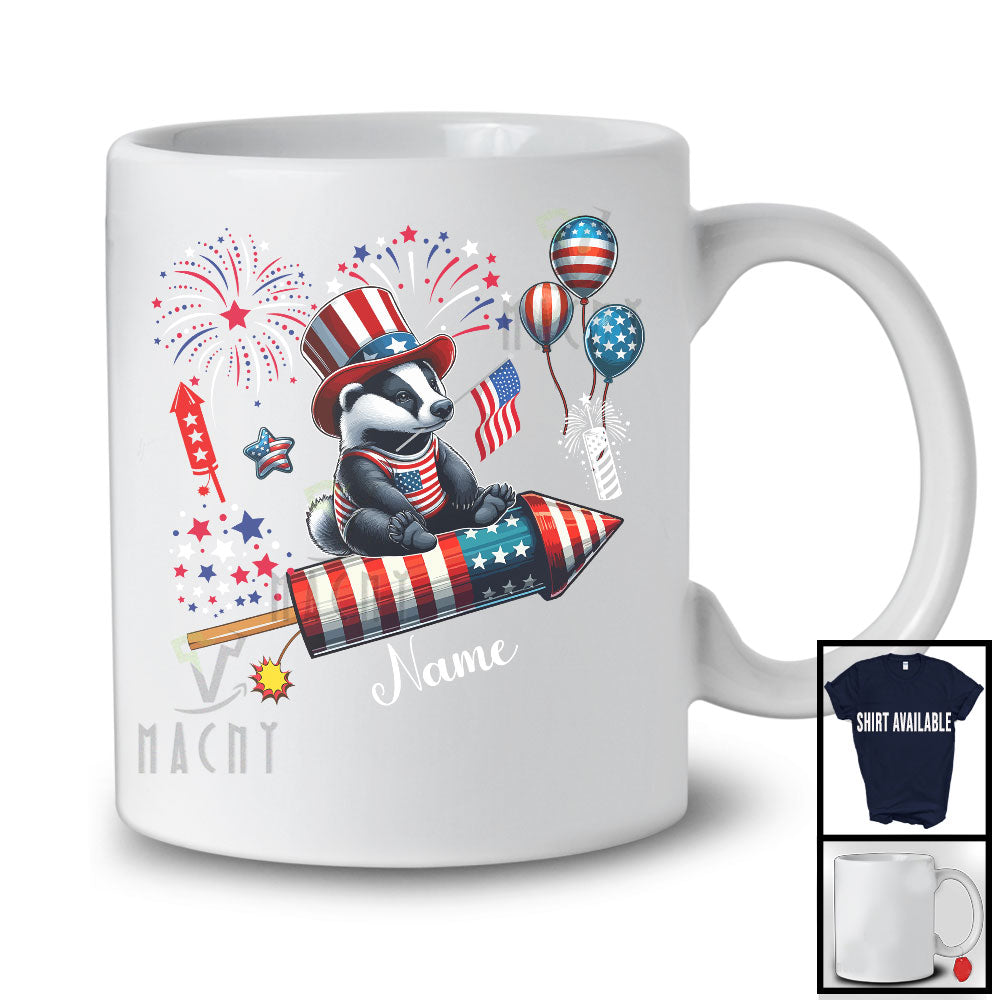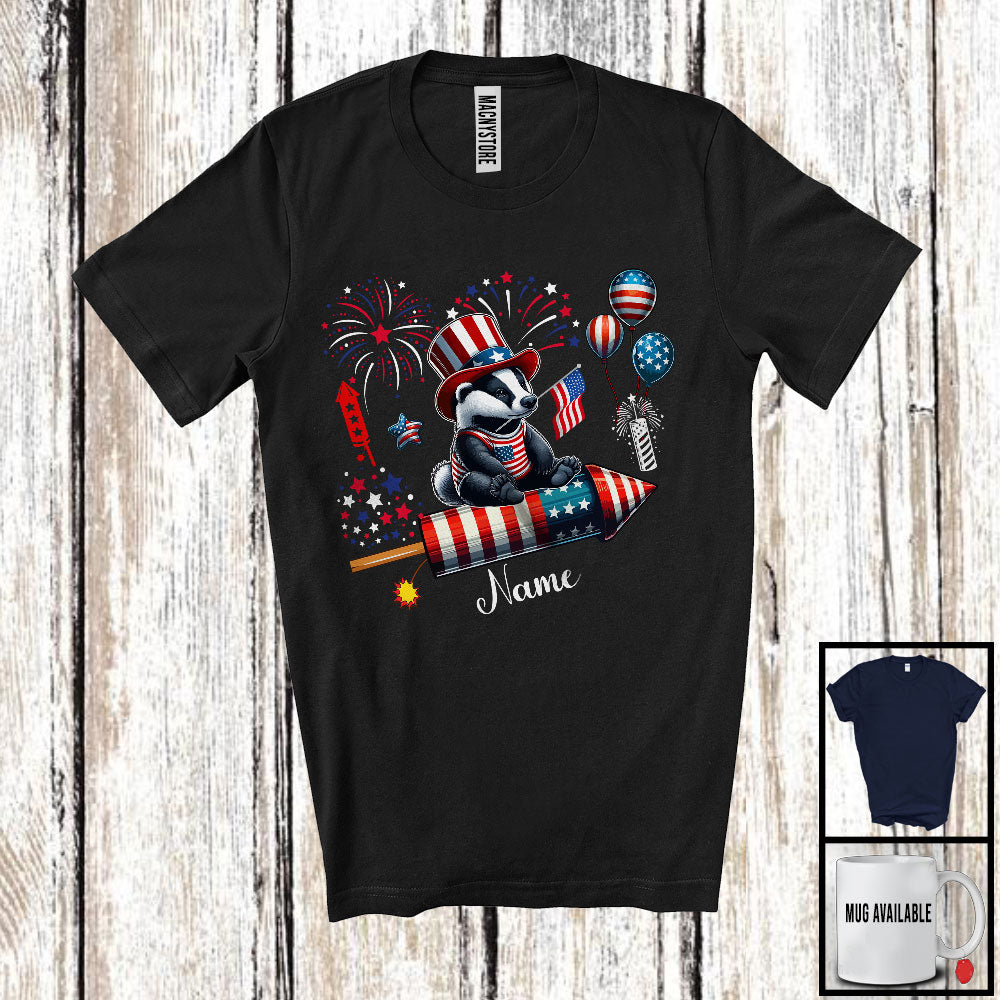 Personalized Badger Riding Firecracker, Lovely 4th Of July USA Flag Custom Name, Zoo Animal T-Shirt