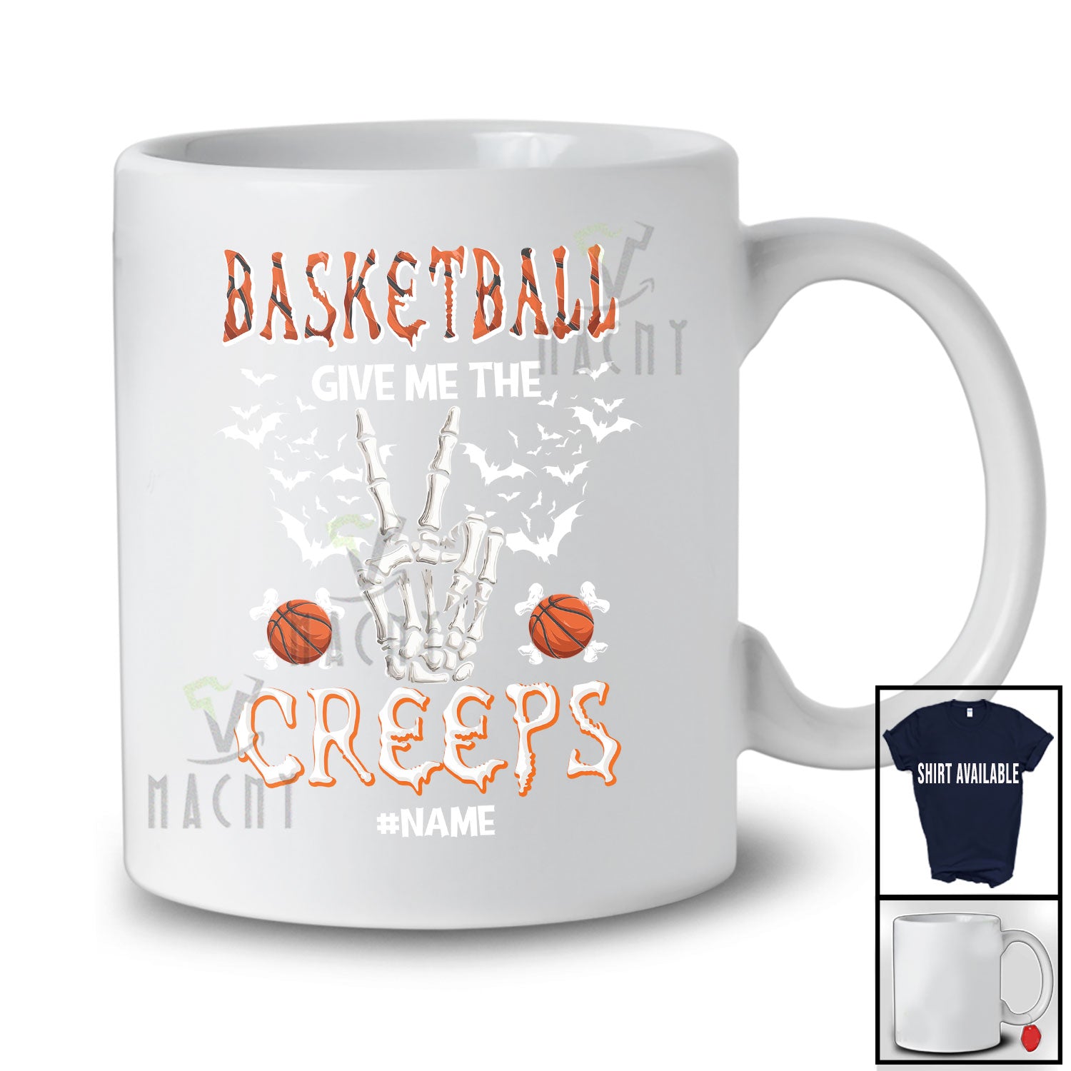 • Personalized Basketball Give Me Creeps; Proud Halloween Peace Skeleton Hand; Custom Name Player T-Shirt. This cotton t-shirt is a durable staple product with a classic fit. One of the most popular items, it has a relaxed style made for everyday and casual wear.