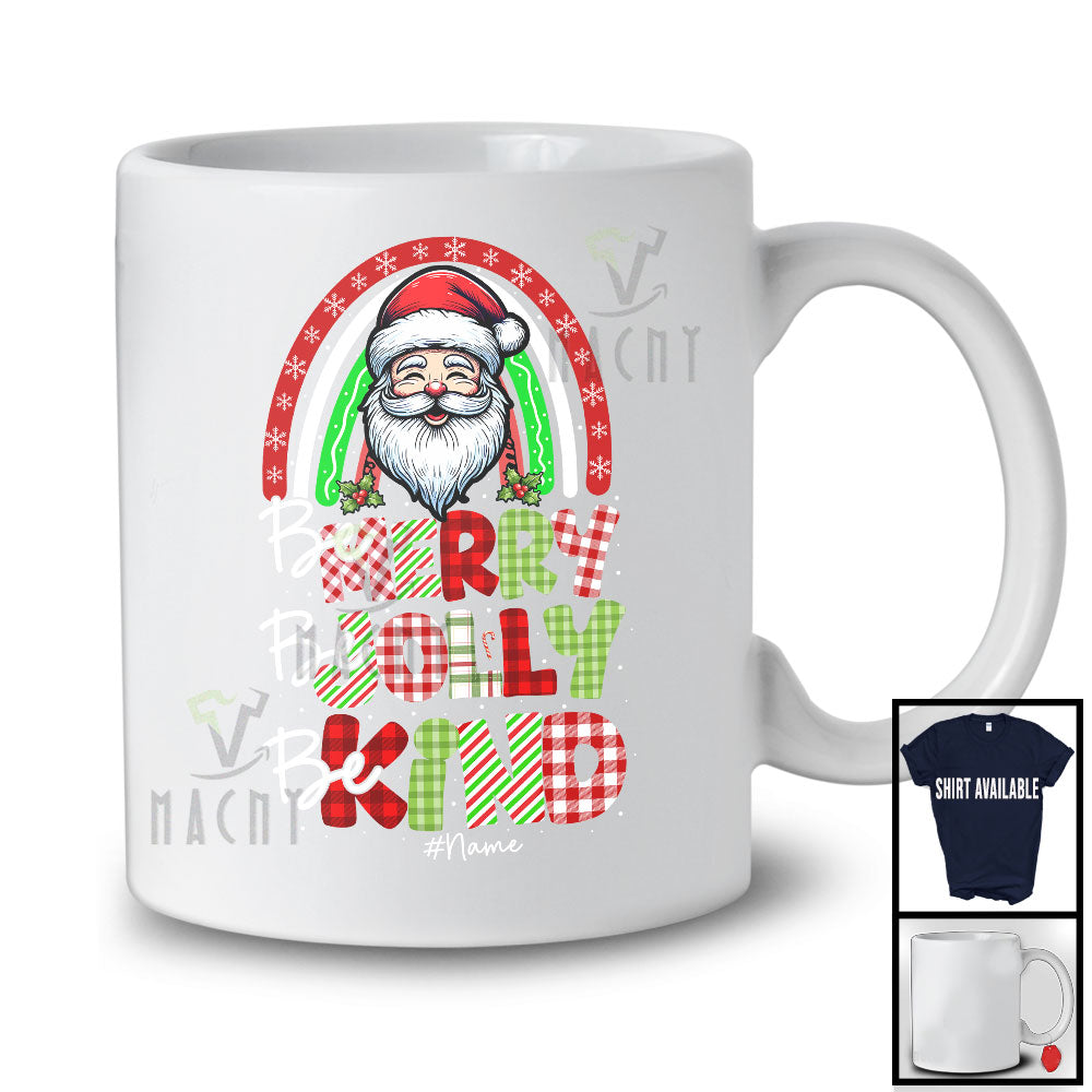 new MacnyStore - Personalized Be Merry Jolly Kind; Colorful Christmas Santa Plaid Rainbow; Custom Name Family T-Shirt – Macnystore
