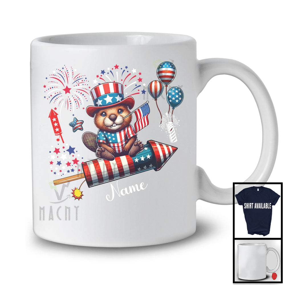 Personalized Beaver Riding Firecracker, Lovely 4th Of July USA Flag Custom Name, Zoo Animal T-Shirt