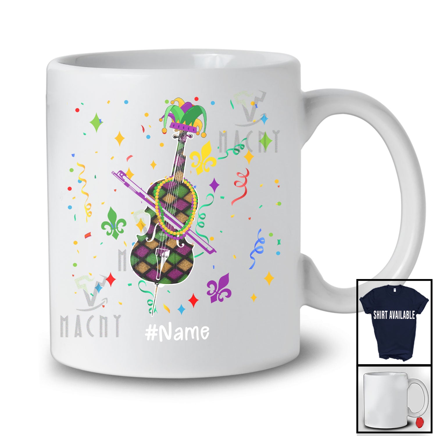 Life is too short to live without the Personalized Cello With Mardi Gras Beads Jester Hat; Lovely Custom Name Cello Player Team T-Shirt. Be happy. Be Content. Be Satisfied.