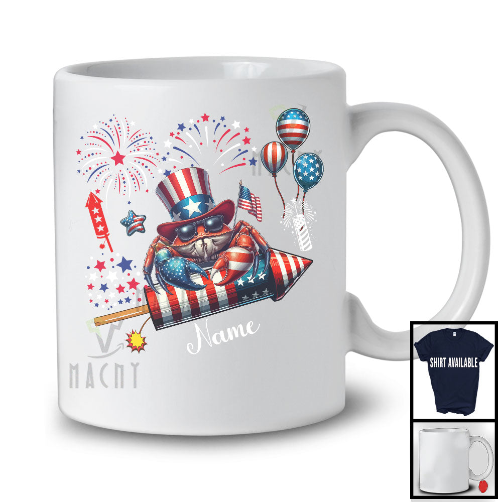 Personalized Crab Riding Firecracker, Lovely 4th Of July USA Flag Custom Name, Fish Sea Animal T-Shirt